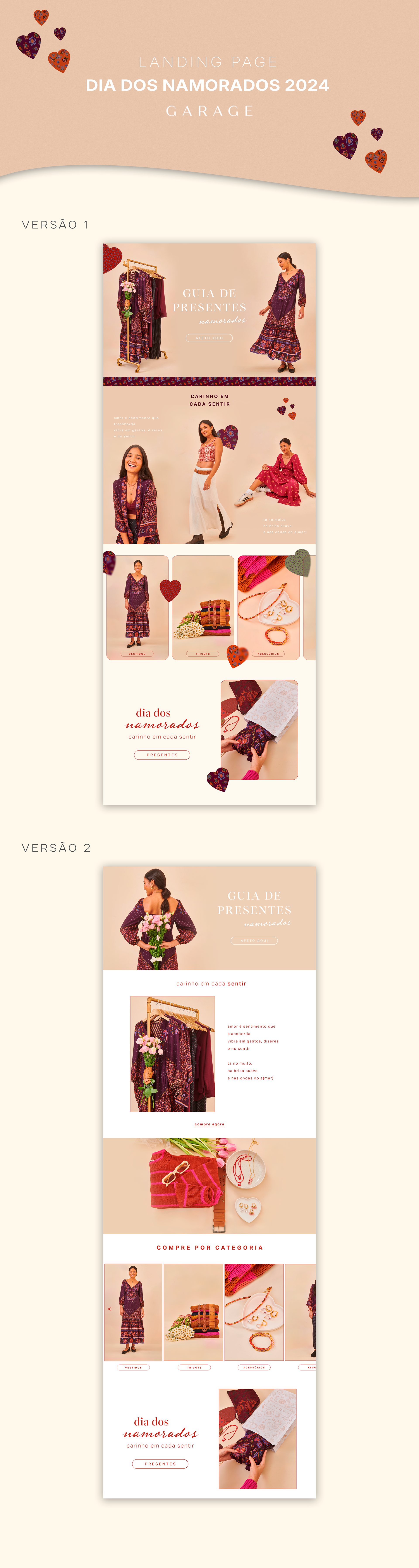 Landing Page criada para coleção de dia dos namorados da marca de roupa Garage Rio.